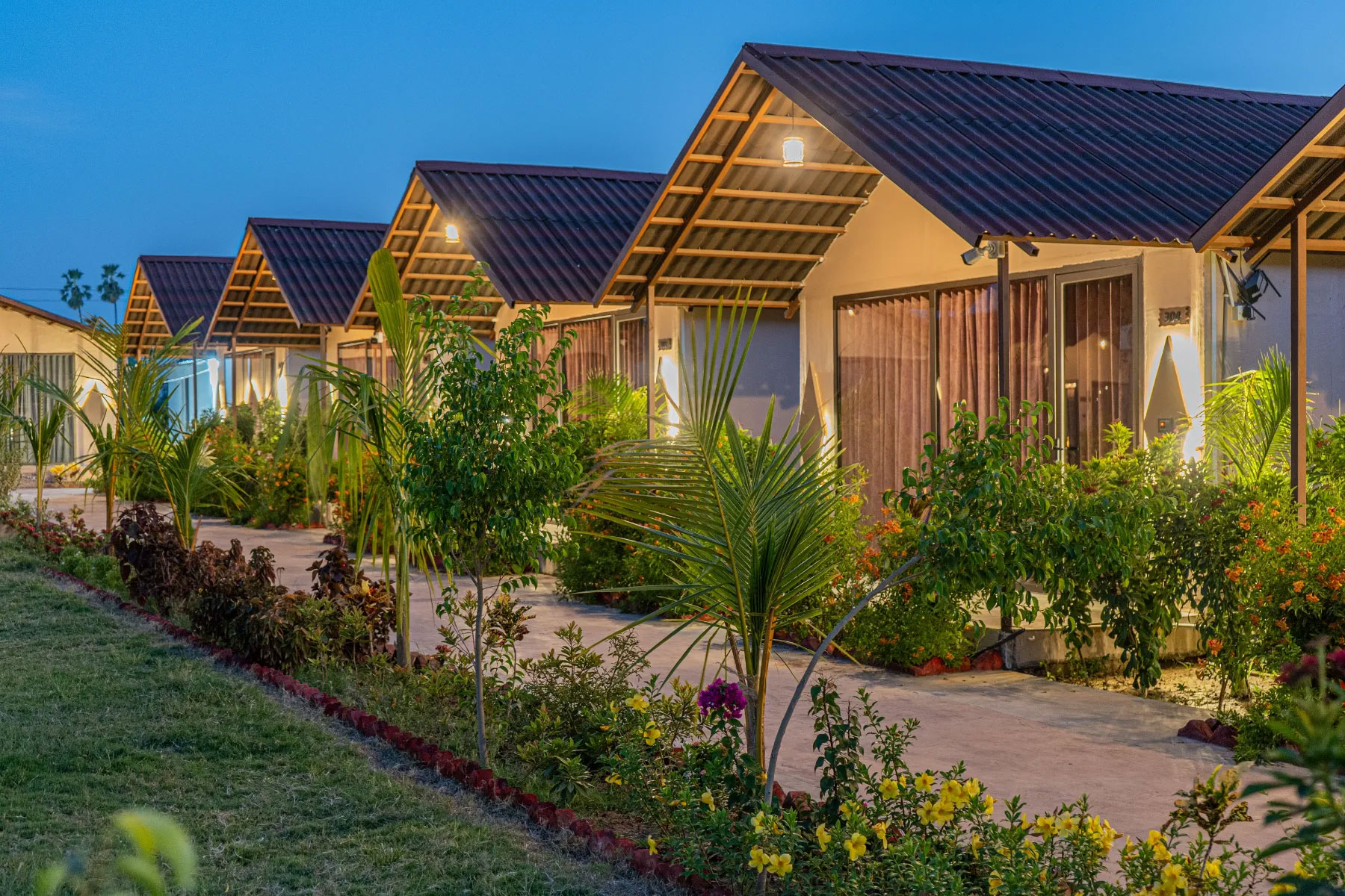 Accommodation: Offers cozy Deluxe Cottages and luxurious rooms with modern amenities, including air conditioning, 24-hour room service, and private bathrooms.