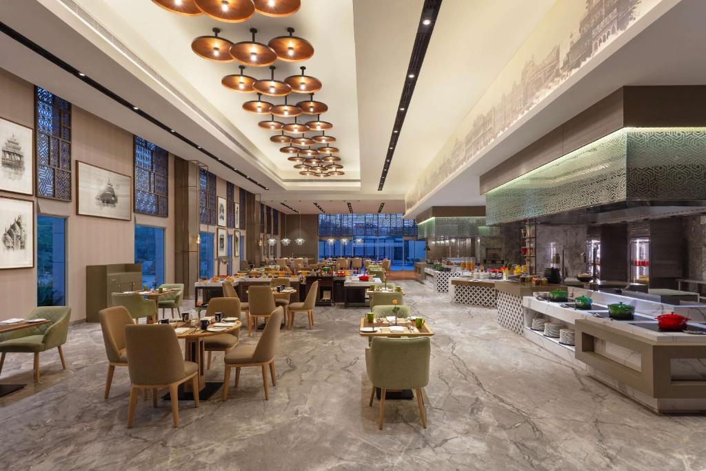 • Indulge in diverse dining options at The Amber Kitchen, Onyx Bar and Lounge, Garden Bar, and The Aravali Bar & Grill. Relax by the infinity pool or work out at the fitness center. DoubleTree By Hilton Jaipur Amer hosts live Rajasthani folk dance performances and offers recreational activities like cricket, badminton, yoga, young chef sessions, curated food trails, and heritage walks.